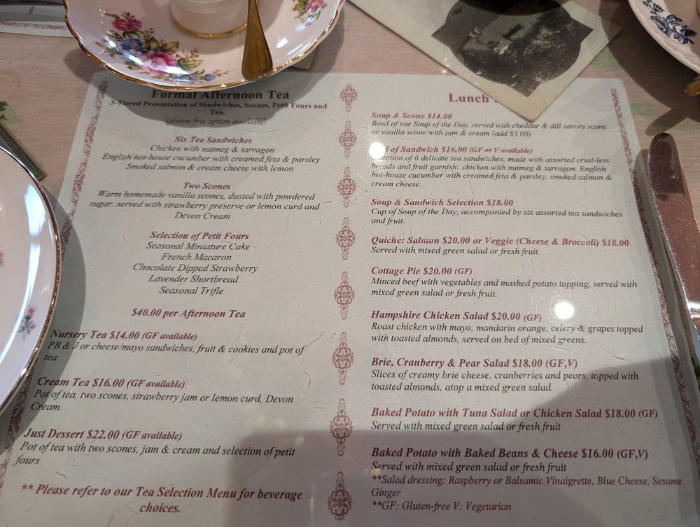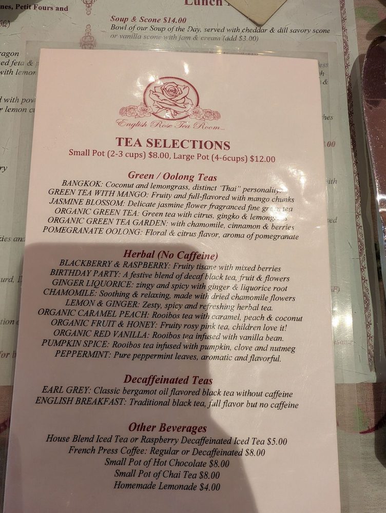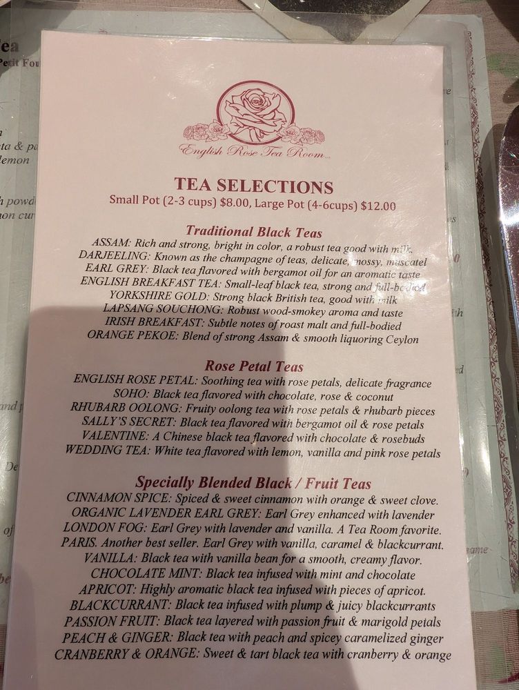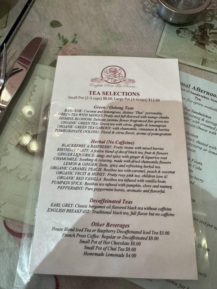 English Rose Tea Room Menu (2025 Update)